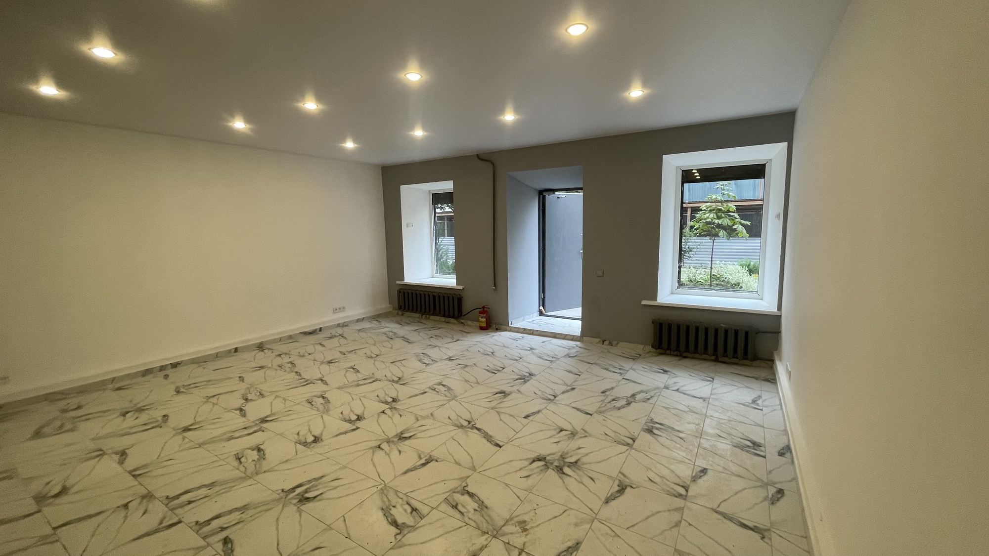 Мощность 15 кВт. Помещение из двух залов, «фасадный зал» площадью ~38 и второй ~45 метров, общая почти 83 метра, потолки 2,85 метра. Имеется выход во двор + 2 окна еще. Новый капитальный ремонт, более 2х млн стоимость ремонта, все коммуникации новые, полы, стены и т.д.